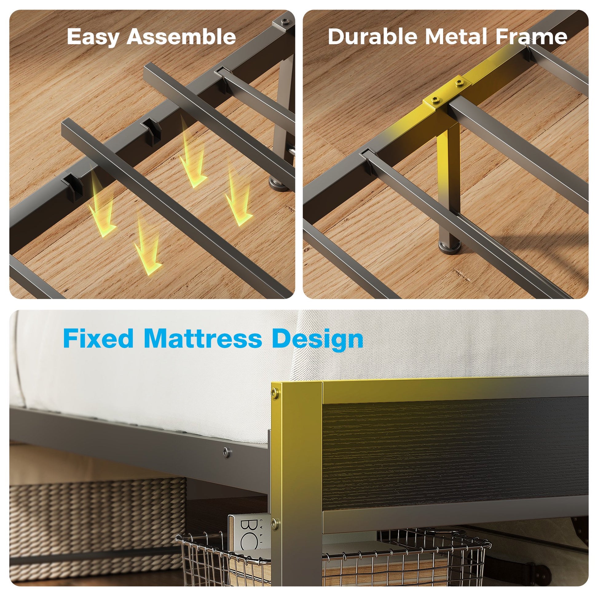 - Integrated Charging Station & Sturdy Frame: The built-in charging station includes 2 USB ports and 2 AC outlets for convenient power access. Supported by a reinforced metal frame, the bed can hold up to 800 lbs, ensuring lasting durability and noise-free stability.