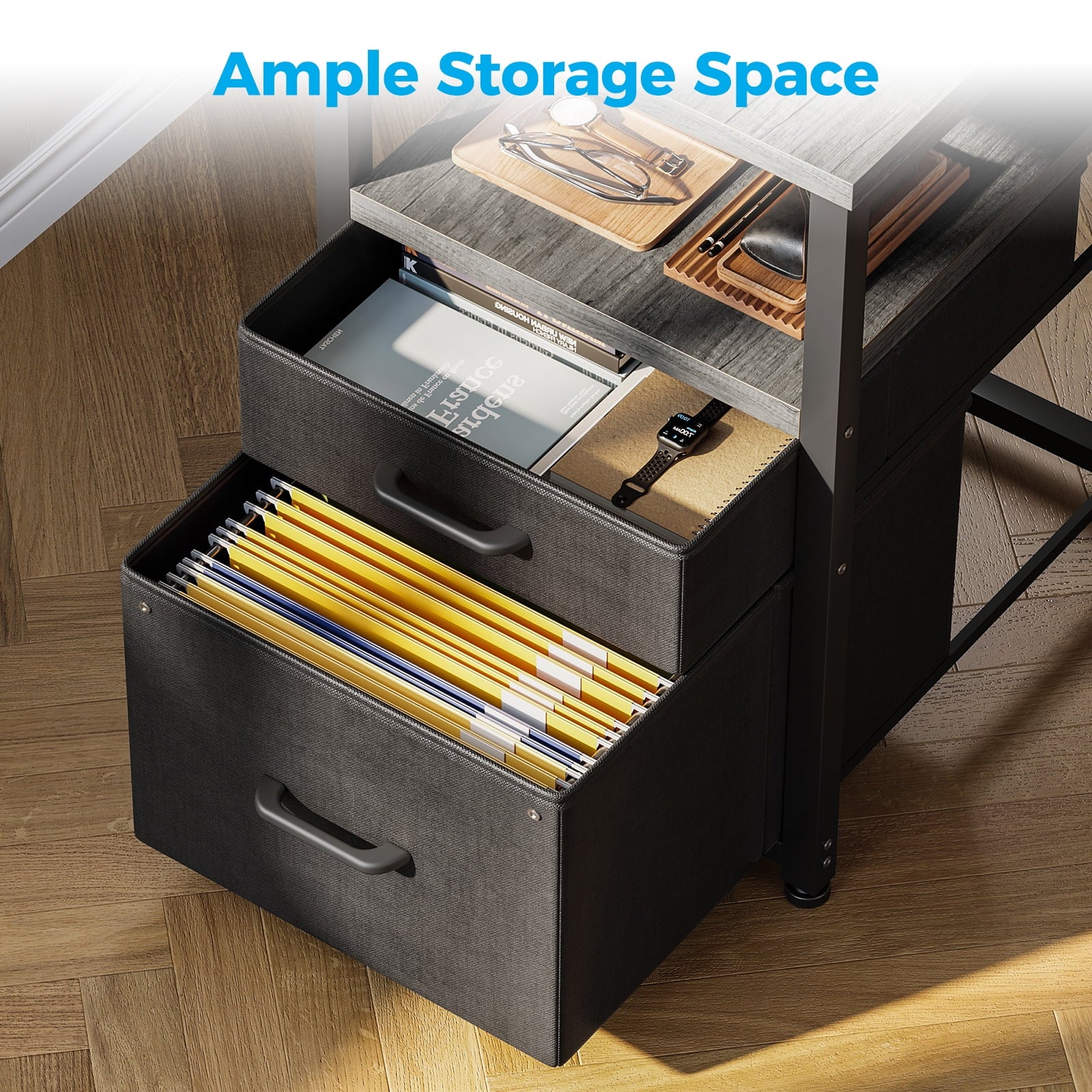 - Smart Storage Solutions: Five soft fabric drawers, a spacious file cabinet, and a side shelf keep your documents, devices, and office gear neatly organized and within reach.