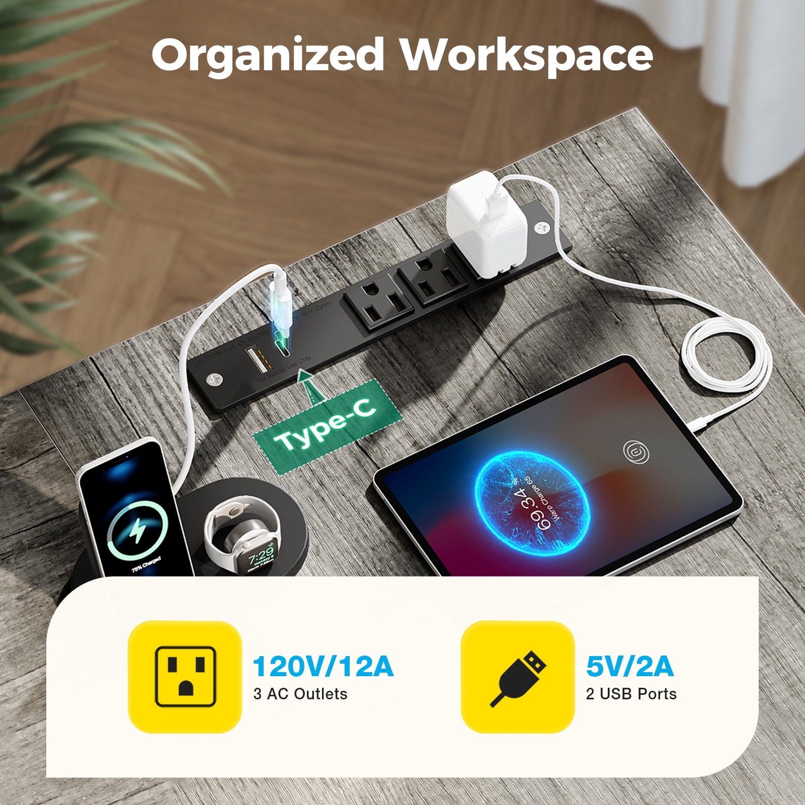 - Power at Your Fingertips: Stay fully charged with 3 AC outlets, 1 USB, and 1 Type-C port built into the desk—perfect for powering laptops, phones, and gaming accessories.