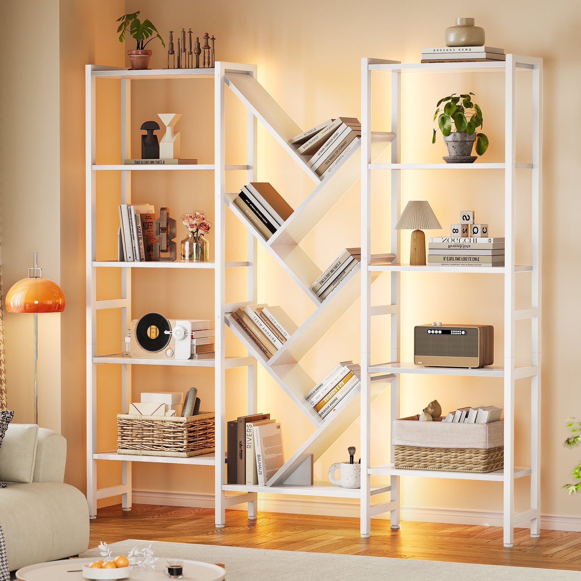 - Large Tree Design Storage – 17 open shelves provide spacious storage for books, décor, and collectibles.